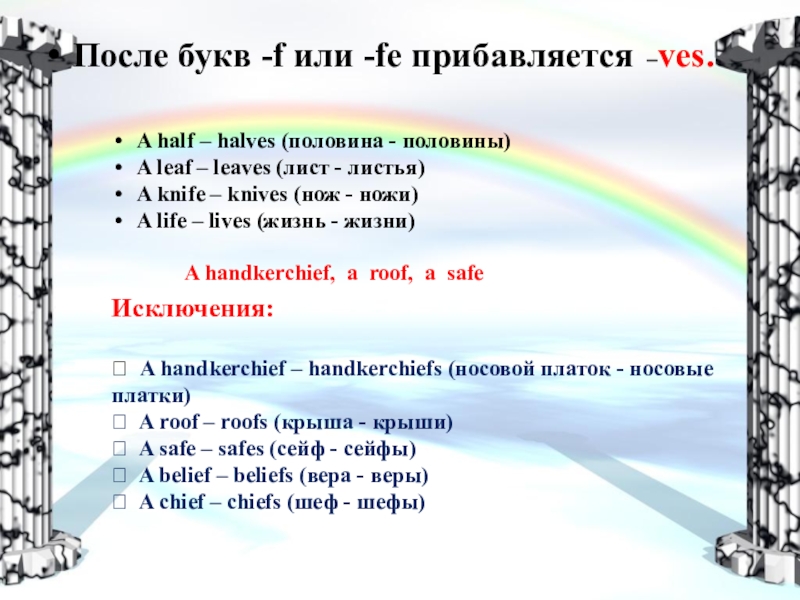 Слайд 8После букв -f или -fe прибавляется