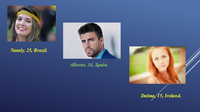 Nataly, 25, Brazil.Alberto, 34, Spain.Dalma, 15, Ireland.