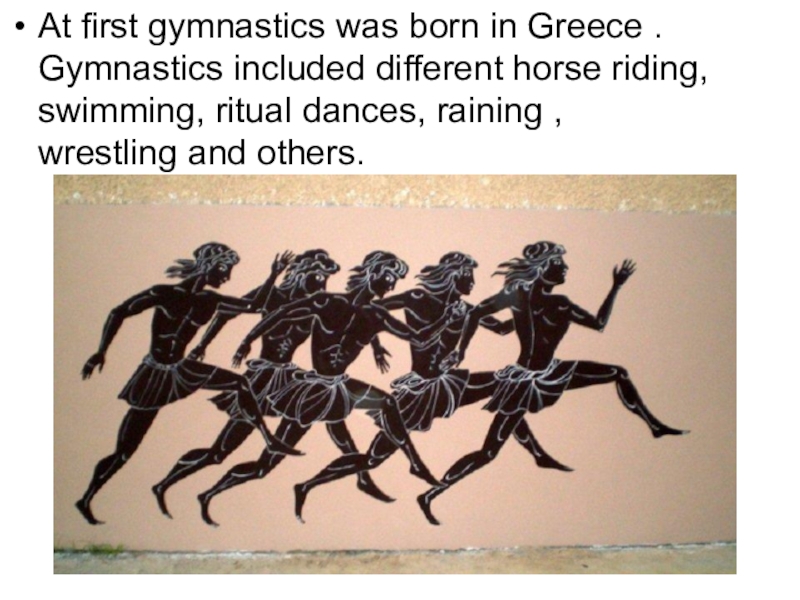 Слайд 2At first gymnastics was born in Greece . Gymnastics included different