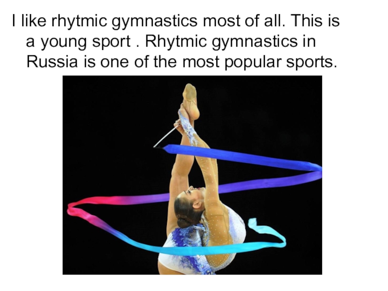 I like rhytmic gymnastics most of all. This is a young sport . Rhytmic gymnastics in Russia