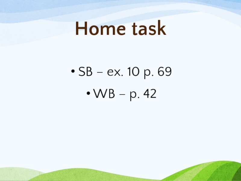 Home taskSB – ex. 10 p. 69WB – p. 42