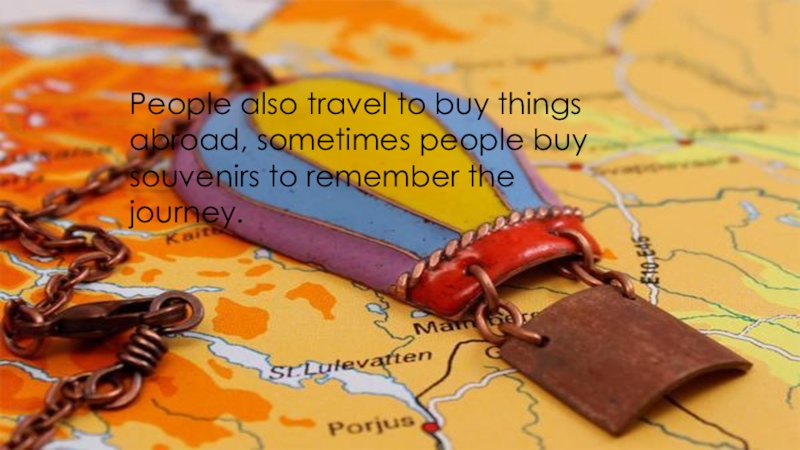 Слайд 11People also travel to buy things abroad, sometimes people buy souvenirs