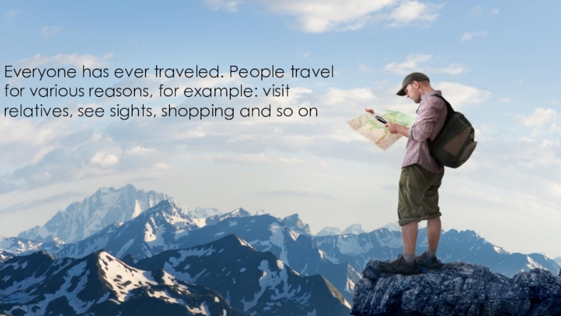 Слайд 2Everyone has ever traveled. People travel for various reasons, for example: