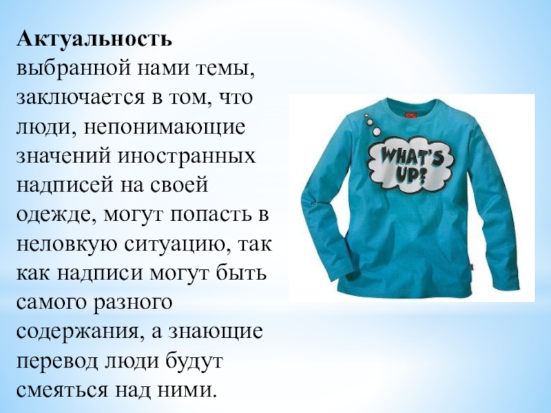«Надписи на одежде на иностранном языке – дань моде или передача смыслов»