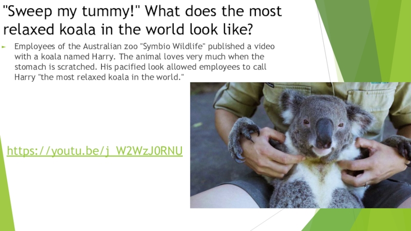 Employees of the Australian zoo "Symbio Wildlife" published a video with a koala named Harry. The animal loves very much when the stomach is scratched. His pacified look allowed employees to call Harry "the most relaxed koala in the world."