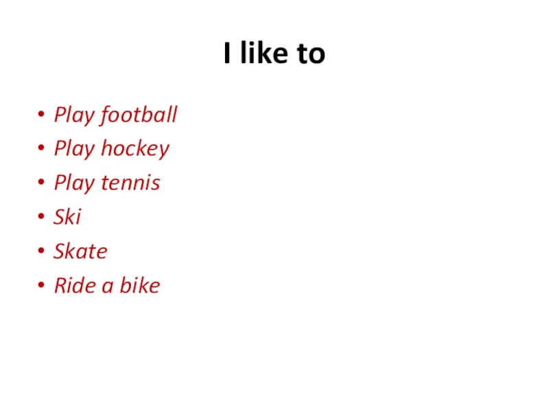 I like toPlay footballPlay hockeyPlay tennisSkiSkateRide a bike