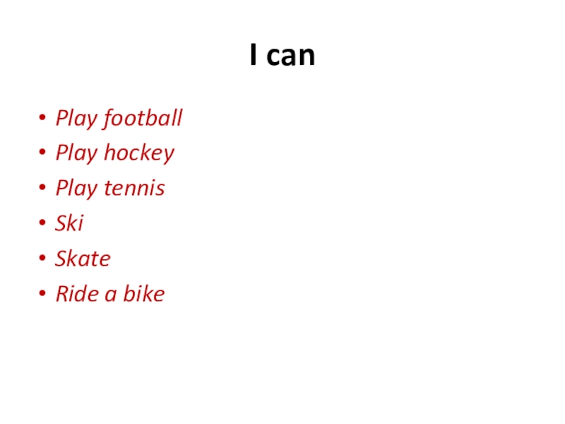 I can Play footballPlay hockeyPlay tennisSkiSkateRide a bike