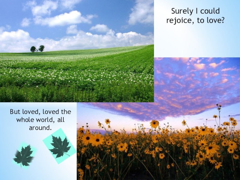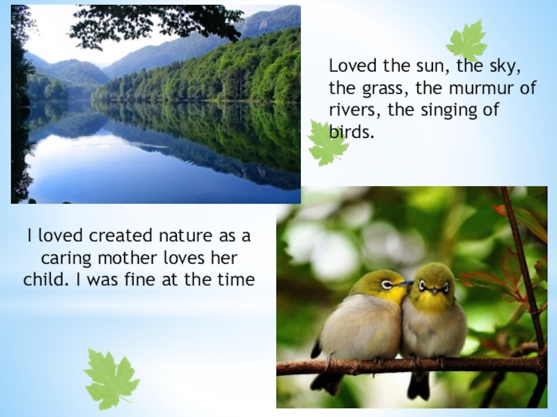 Loved the sun, the sky, the grass, the murmur of rivers, the singing of birds.