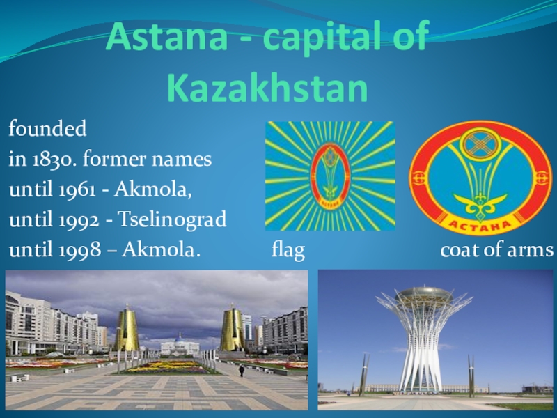 Astana - capital of Kazakhstanfounded in 1830. former names until 1961 - Akmola, until 1992 - Tselinograd