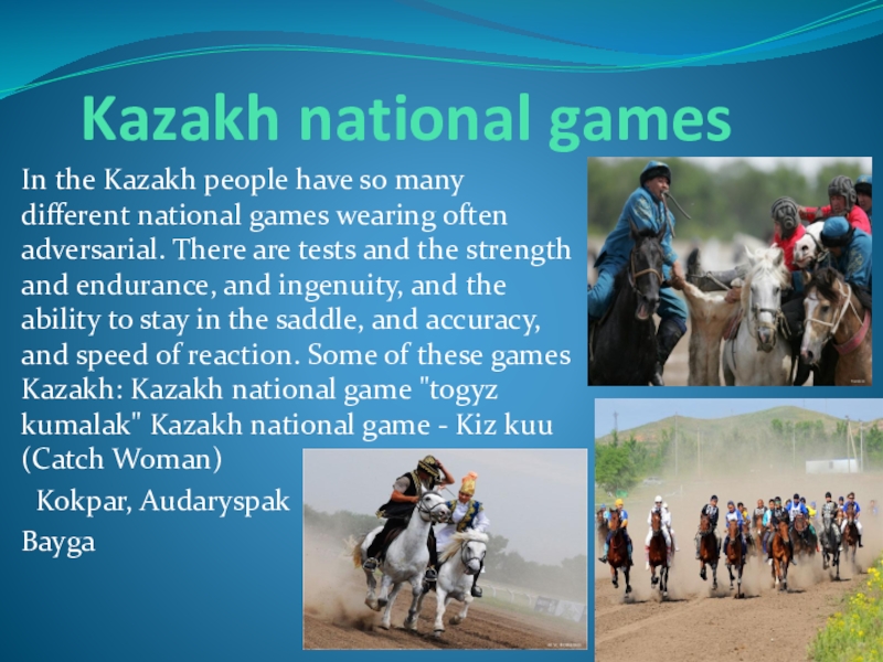 Kazakh national gamesIn the Kazakh people have so many different national games wearing often adversarial. There are
