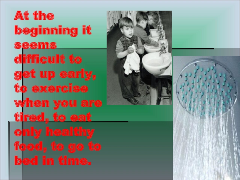 exercise when you are tired, to eat only healthy food, to go to bed in time.