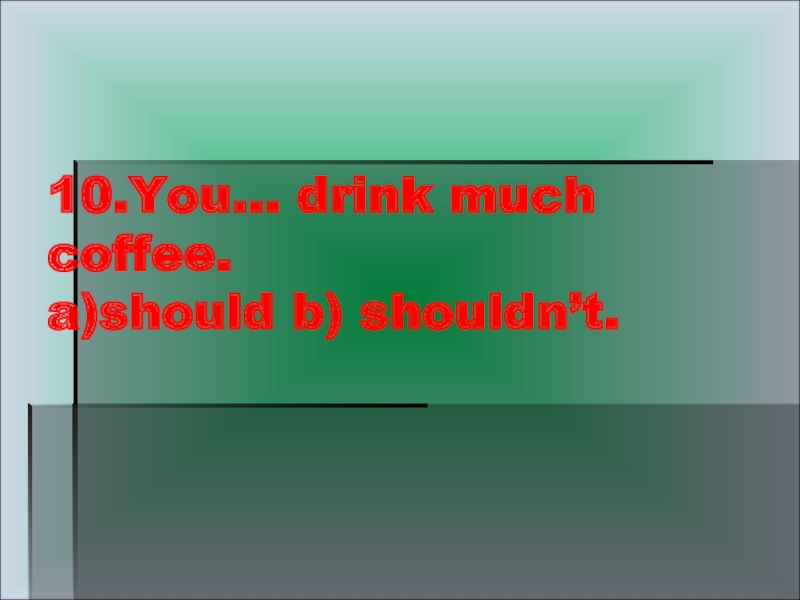 Слайд 1310.You... drink much coffee. a)should b) shouldn’t.