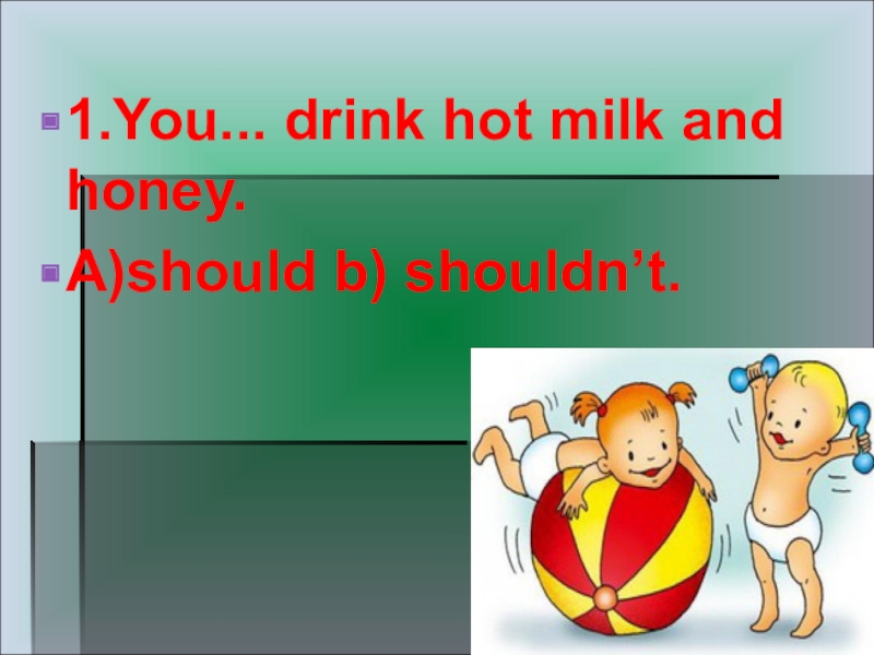 Слайд 107.You... drink cold water. a)should b) shouldn’t.