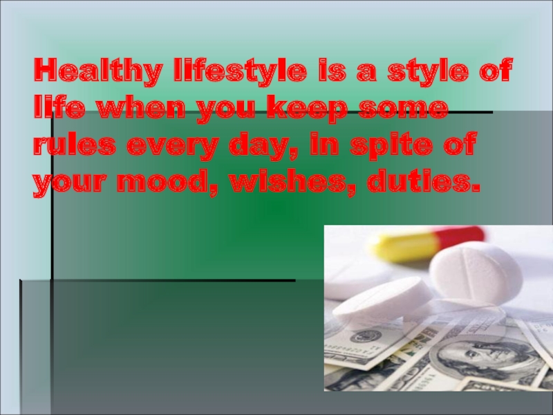 Healthy lifestyle is a style of life when you keep some rules every day, in spite of
