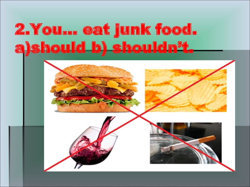 Слайд 52.You... eat junk food. a)should b) shouldn’t.