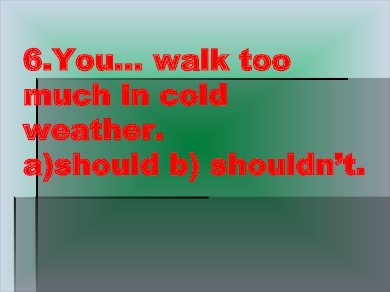 6.You... walk too much in cold weather. a)should b) shouldn’t.