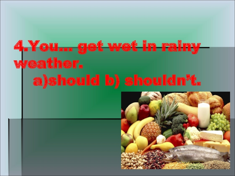 Слайд 74.You... get wet in rainy weather. a)should b) shouldn’t.