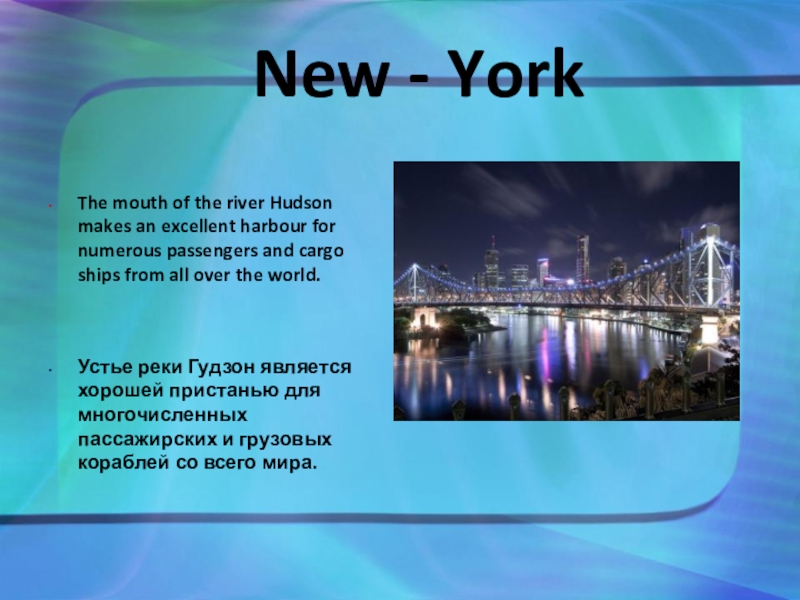 Нью-Йорк расположен в устье реки Гудзон.