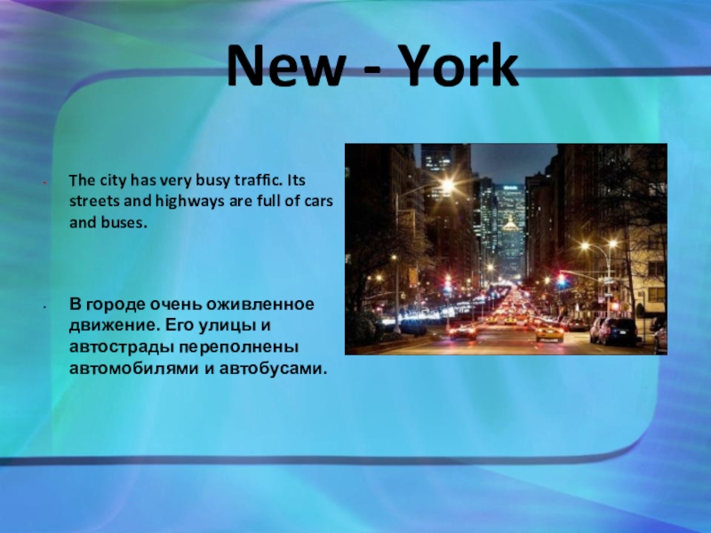 В городе очень оживленное движение. Его улицы и автострады переполнены автомобилями и автобусами.