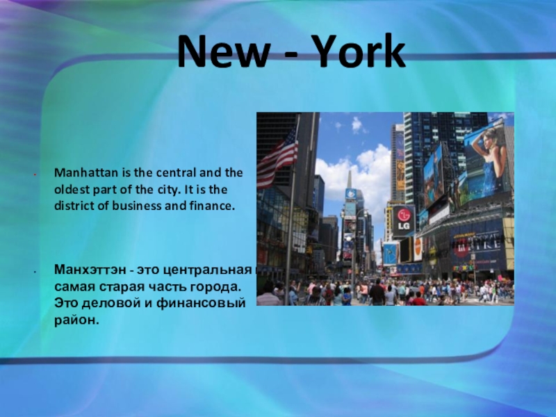 Манхэттэн - это центральная и самая старая часть города. Это деловой и финансовый район.