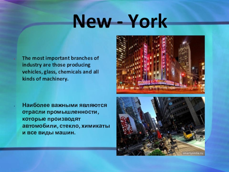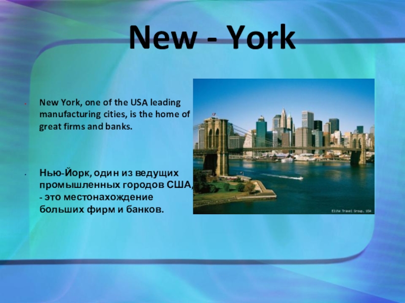Нью-Йорк, один из ведущих промышленных городов США, - это местонахождение больших фирм и банков.