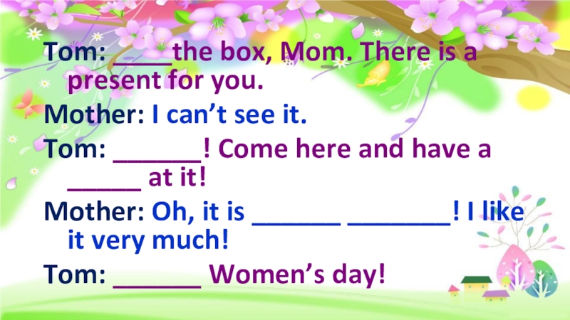 Слайд 5Tom: ____the box, Mom. There is a present for you.