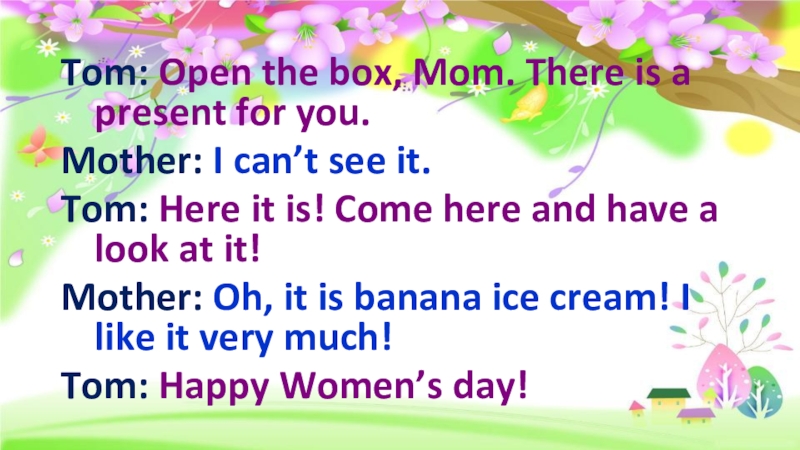 Слайд 4Tom: Open the box, Mom. There is a present for you.