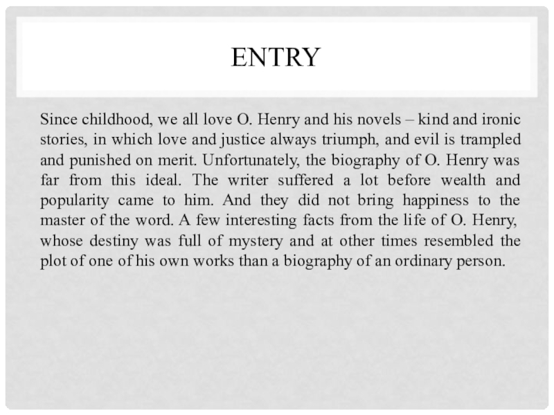 kind and ironic stories, in which love and justice always triumph, and evil is trampled and punished on merit. Unfortunately, the biography of O. Henry was far from this ideal. The writer suffered a lot before wealth and popularity came to him. And they did not bring happiness to the master of the word. A few interesting facts from the life of O. Henry, whose destiny was full of mystery and at other times resembled the plot of one of his own works than a biography of an ordinary person.