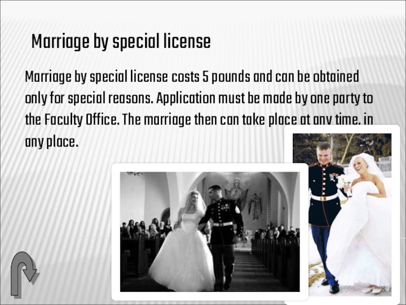 Marriage by special licenseMarriage by special license costs 5 pounds and can be obtained only for special