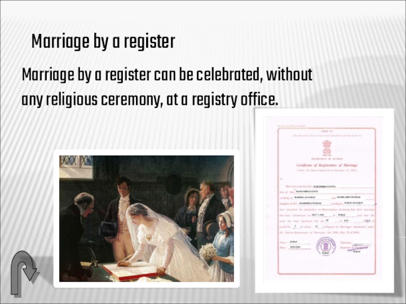 Marriage by a registerMarriage by a register can be celebrated, without any religious ceremony, at a registry