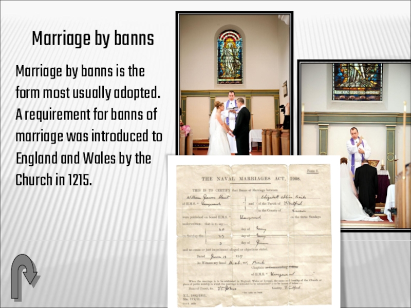 Marriage by bannsMarriage by banns is the form most usually adopted. A requirement for banns of marriage