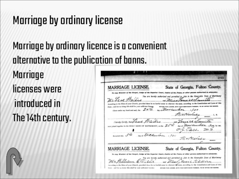 Marriage by ordinary licenseMarriage by ordinary licence is a convenient alternative to the publication of banns. Marriage