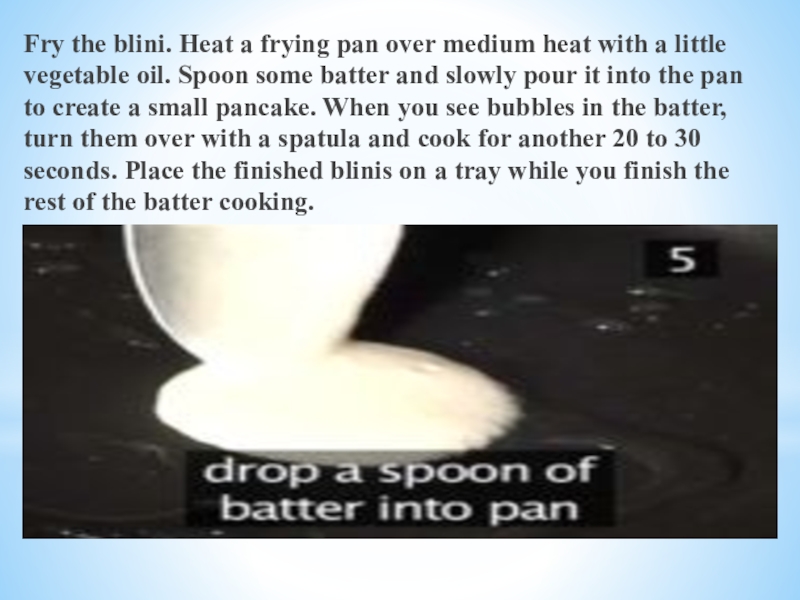 Слайд 8Fry the blini. Heat a frying pan over medium heat with a