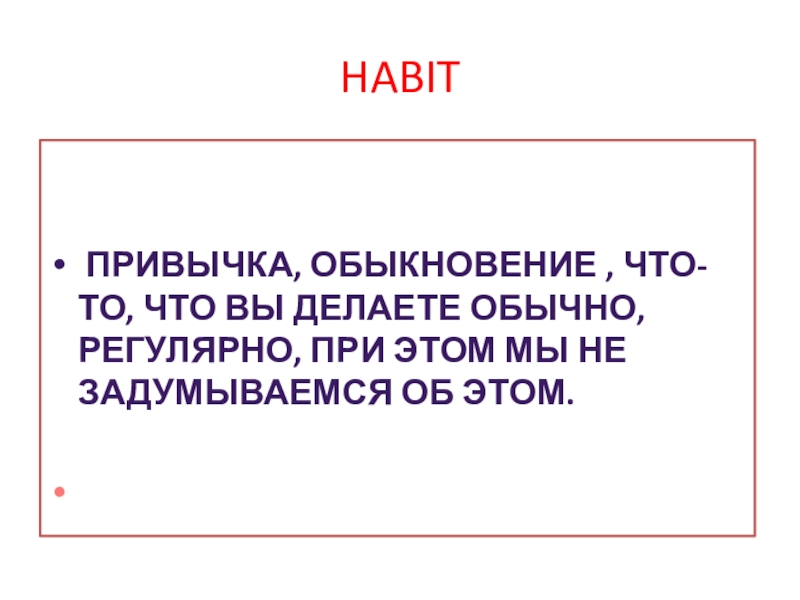 HABIT привычка, обыкновение , Что-то, что вы делаете обычно, регулярно, При этом мы не задумываемся об этом.