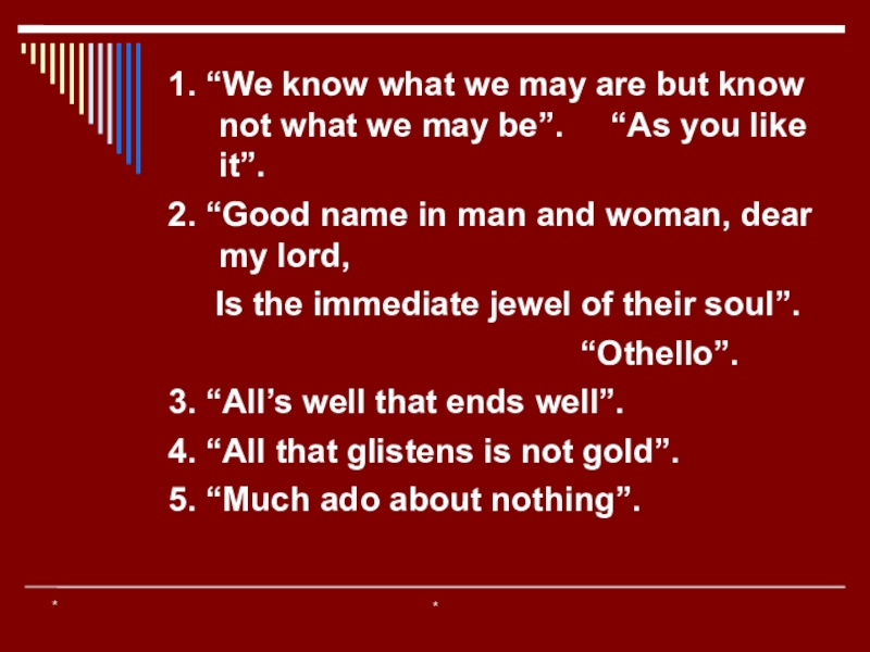 4. «Весь мир – театр. В нем женщины, мужчины – все актеры».