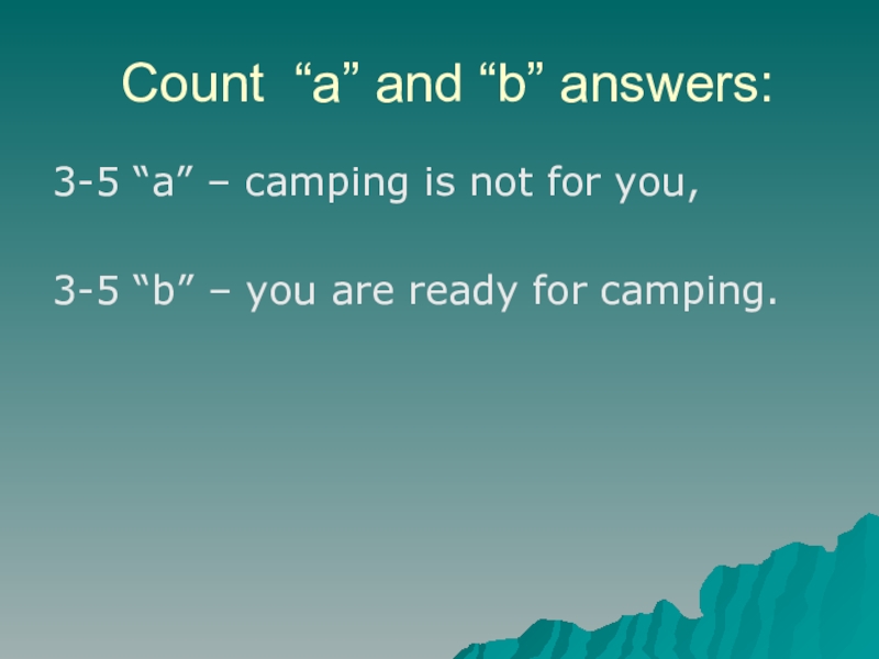 Count “a” and “b” answers:3-5 “a” – camping is not for you,3-5 “b” – you are ready