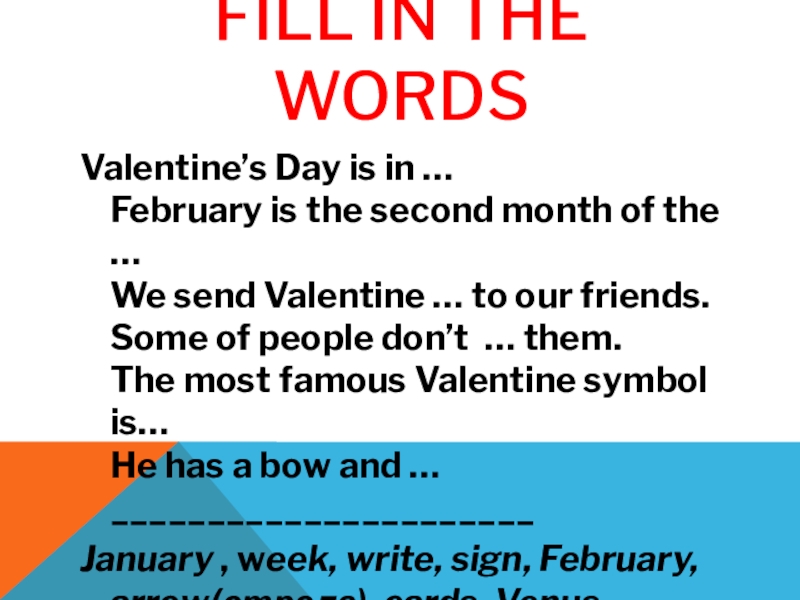 January , week, write, sign, February, arrow(стрела), cards, Venus, year , Cupid