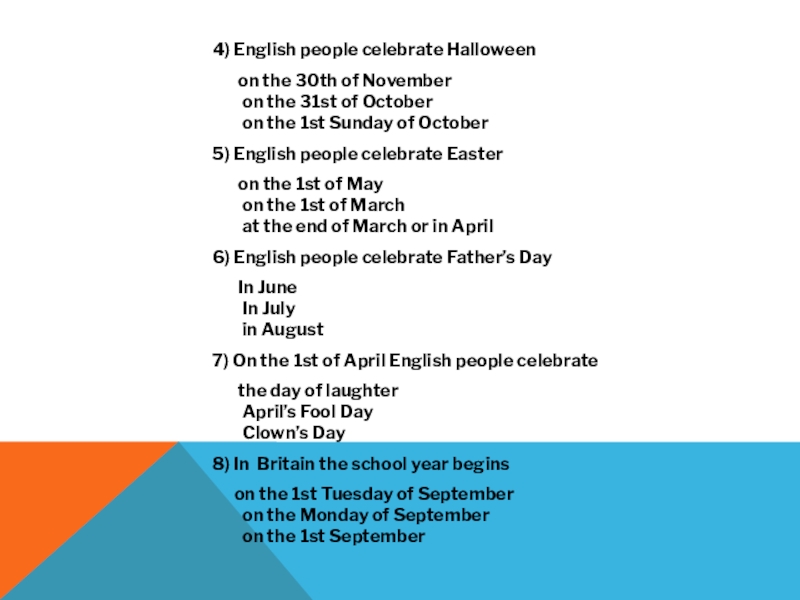 7) On the 1st of April English people celebrate