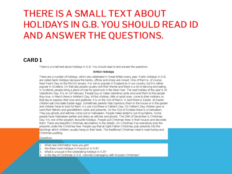 Слайд 14There is a small text about holidays in G.B. You should
