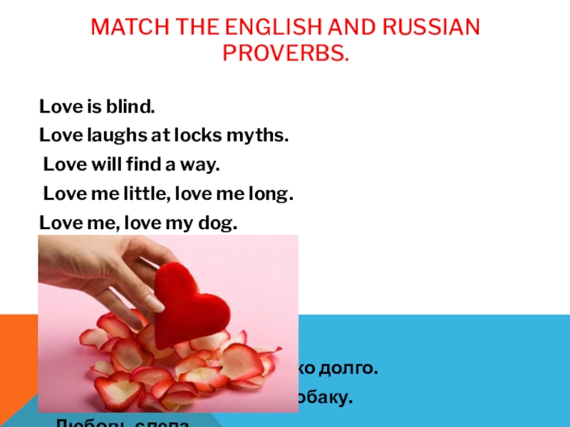 Слайд 13Match the English and Russian proverbs.