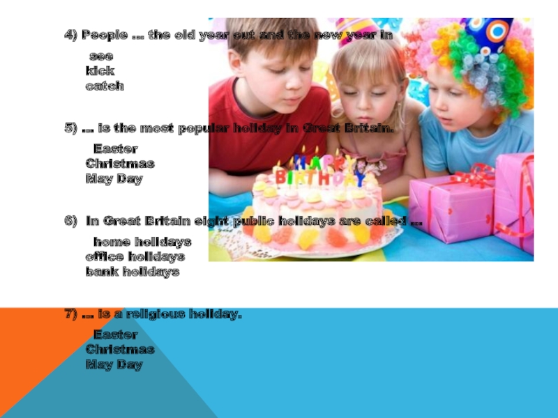 Слайд 74) People ... the old year out and the new year