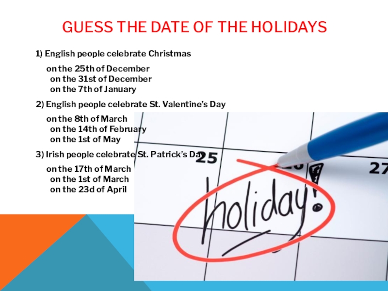 Слайд 10Guess the date of the holidays