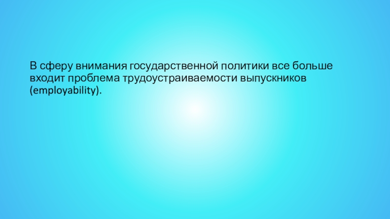 Слайд 12В сферу внимания государственной политики все больше входит проблема трудоустраиваемости выпускников