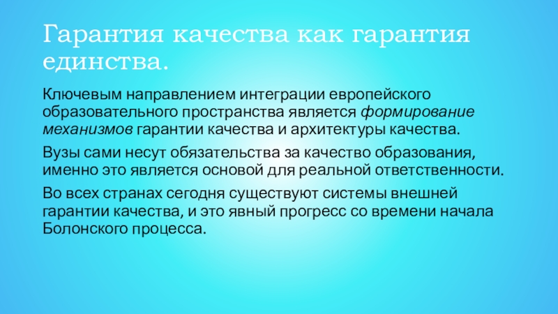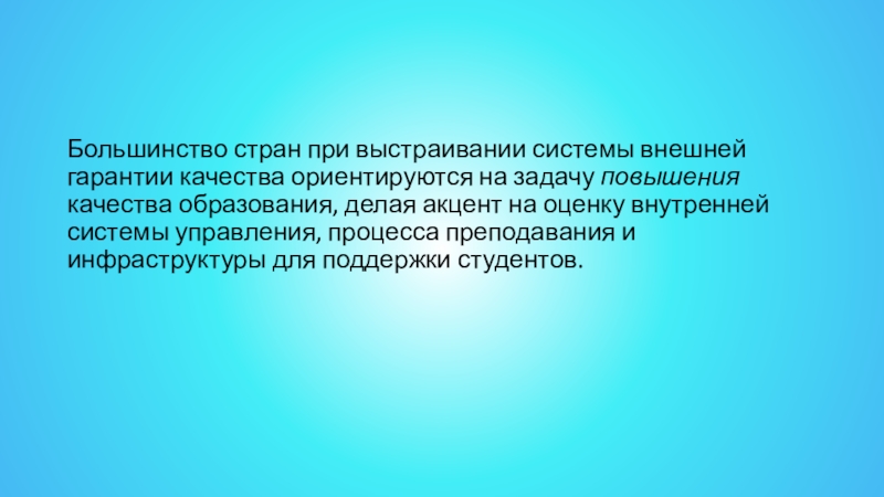 Слайд 14Большинство стран при выстраивании системы внешней гарантии качества ориентируются на задачу