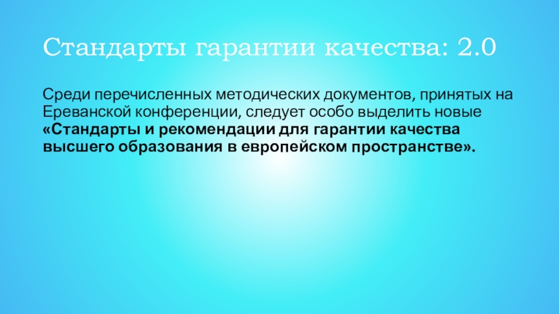 следует особо выделить новые «Стандарты и рекомендации для гарантии качества высшего образования в европейском пространстве».