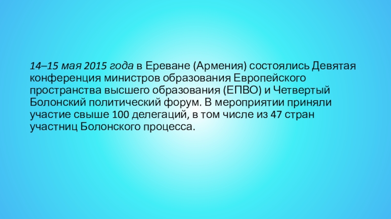 Слайд 214–15 мая 2015 года в Ереване (Армения) состоялись Девятая конференция министров