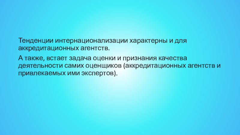 Слайд 18Тенденции интернационализации характерны и для аккредитационных агентств.