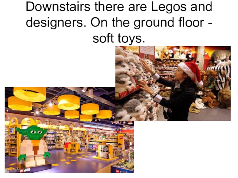 Слайд 5Downstairs there are Legos and designers. On the ground floor -