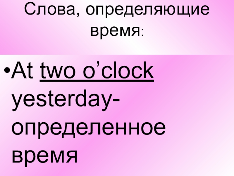 Слова, определяющие время: At two o’clock yesterday-определенное время