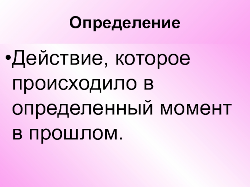 ОпределениеДействие, которое происходило в определенный момент в прошлом.